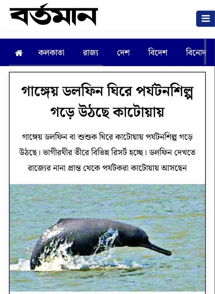 Tourism Industry is Developing in Katwa centered aroud the Gangetic Dolphins